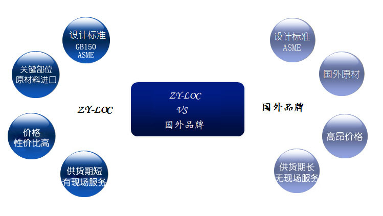 ? 全球的標準幾乎都是參照美國機械工程師協(xié)會(huì )ASME標準而制定的,GB150也是如此?;谖覈慕饘俨牧系慕鹣嘟M織,p、s含量,綜合機械性能以及抗腐蝕性能相比歐美發(fā)達國家尚存在一定差距,因此制定GB150時(shí)都偏于保守,安全系數較大,許用應力較低,腐蝕裕度較大等。 ZY-LOC正是以GB150進(jìn)行設計的,關(guān)鍵部位的材料又選用進(jìn)口的優(yōu)質(zhì)原材,因此相比國外同類(lèi)產(chǎn)品更安全。